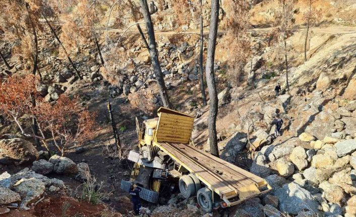 Antalya’nın Manavgat ilçesinde iş makinesi yüklü kamyonun 10 metrelik şarampole devrilmesi sonucu meydana gelen kazada 2 kişi yaralandı.