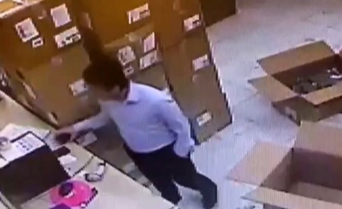 Beyoğlu’ndaki bir alışveriş merkezinin içinde bulunan iş yerinin deposundan cep telefonu, cüzdan ve bir miktar para çalan şahıs yakalandı. Şüphelinin hırsızlık yaptığı anlar güvenlik kameralarına yansıdı.