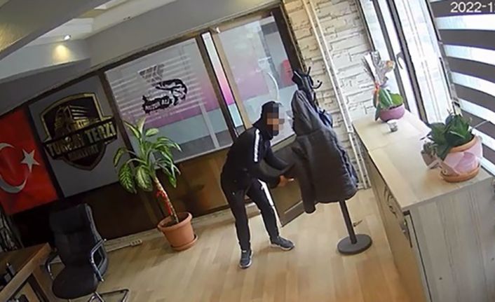 iş yerine gelen kimliği belirsiz şüpheli, kapıdan içeri bir süre baktıktan sonra kimsenin olmamasını fırsat bilerek askıda asılı vaziyette duran montların ceplerini yokladı. İş yerine dönen çalışana yakalanan şüpheli, bir süre durumu izah etmeye çalıştıktan sonra olay yerinden uzaklaştı. Yaşanan hırsızlık teşebbüsü vakasına ilişkin görüntüler, işyerinin güvenlik kamerasında anbean kaydedildi.