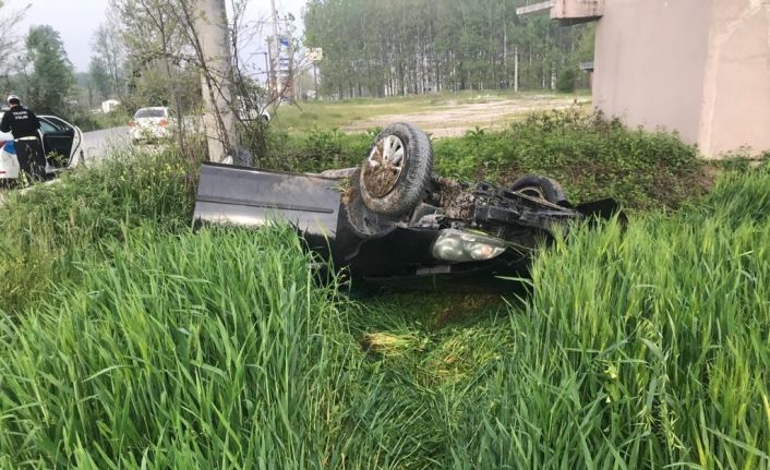Sakarya’nın Akyazı ilçesinde sürücüsünün kontrolünden çıkarak takla atan otomobilin sürücüsü yaralandı.
