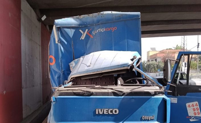 Hatay Dörtyol ilçesinde, işçi servisiyle çarpışan Yurtiçi kargo kamyonu hurdaya döndü. Kazada kargo aracının sürücüsü yaralandı.