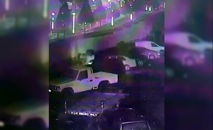 Öte yandan araçların alev alev yandığı ve şahsın olay yerinden kaçtığı anlar ise güvenlik kamerasına yansıdı.