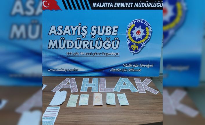 Malatya’da polis ekipleri Yeni tip korona virüs (Covid-19) tedbirleri kapsamında ruhsatsız bir kıraathaneye düzenlediği baskında 130 TL ve iskambil kağıtları ele geçirildi. Polisler, iskambil kağıtları ile "ahlak" yazarak, kumar oynayanlara mesaj verdi.