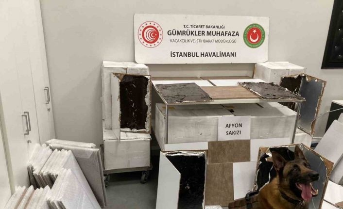 İstanbul Havalimanı’nda gerçekleştirilen operasyonda kargoyla gönderilen ve üretim esnasında içlerine uyuşturucu yerleştirildiği tespit edilen suntalarda 80 kilogram afyon sakızı ele geçirildi.