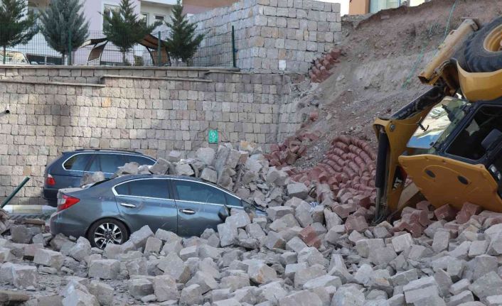 Kayseri’nin Talas ilçesinde, istinat duvarının çökmesi sonucu iş makinesi yaklaşık 5 metre aşağı düştü. İş makinesi operatörü kendi imkanlarıyla devrilen araçtan çıkarken, duvar altında kalan 4 otomobilde hasar oluştu.