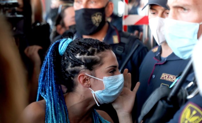 İtalya’da Covid-19 salgını ile mücadele kapsamında ağustosta yürürlüğe giren “Yeşil Geçiş” uygulamasının genişletilmesinin ardından olası protestolara karşı polis alarma geçti.