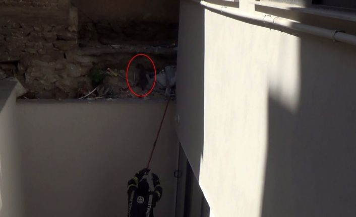 Denizli’de apartman boşluğuna düşen kedi itfaiye ekiplerinin uzun süren uğraşı sonrası kurtarılabildi.