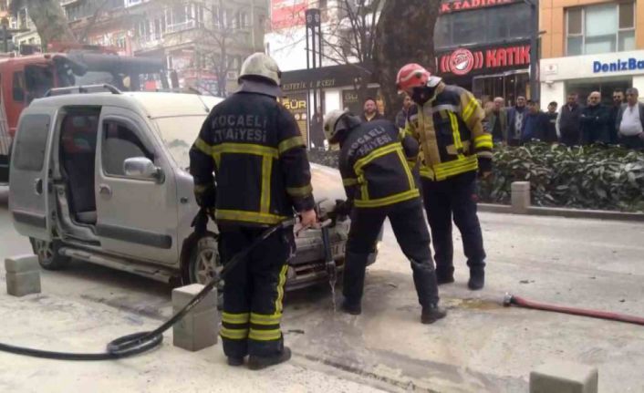 Kocaeli’nin İzmit ilçesinde seyir halindeki hafif ticari araçtan dumanlar yükselmeye başladı. İtfaiye ekipleri motoru yanan araca müdahale ederken çok sayıda vatandaş ise meraklı gözlerle olan biteni izledi.