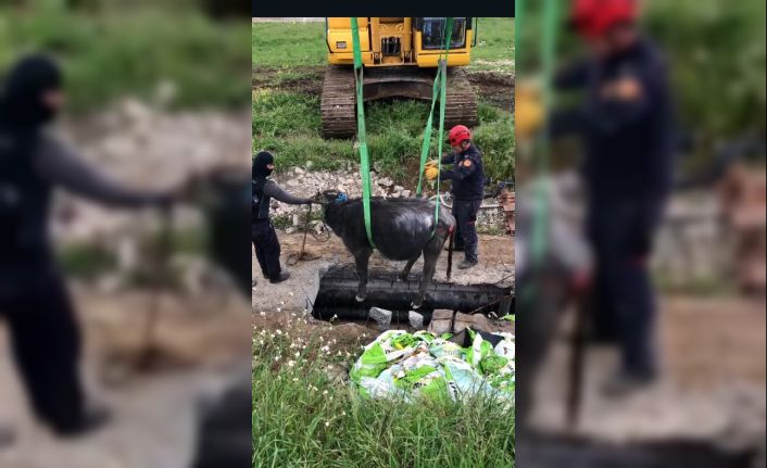 Samsun’da itfaiye ekipleri buhar tüneline düşerek mahsur kalan mandayı uzun süren çalışmalar sonucu kurtardı.