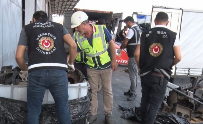 Mersin’de, Kuzey Kıbrıs Türk Cumhuriyeti’ne gitmek üzere Türkiye’ye giriş yapan bir firmaya ait tırlarda, ithalatı yasak olan motor blokları, şanzıman ve otomobil parçaları yerine hurda yükler ele geçirildi.