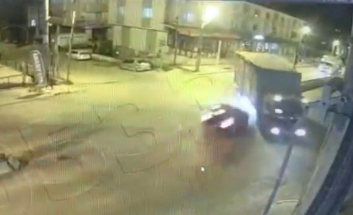 Kaza anı kameraya yansıdı. Görüntülerde; hastane kavşağı istikametine doğru dönüş yapmak isteyen ve yolu yarılayan kamyona, hızla gelen otomobilin adeta ok gibi saplandığı anlar yer aldı. Daha sonrasında otomobil sürücüsünün yaralı şekilde araçtan dışarıya kendini attığı ve çevredeki vatandaşların yardıma koştuğu anlar görüntüye yansıdı.