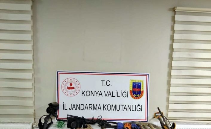 Konya’nın Beyşehir ilçesinde izinsiz kazı yaptığı iddia edilen 3 kişi, kazı malzemeleri ve çok sayıda değişik objelerle jandarmaya yakalandı.