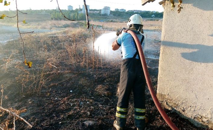 Binada küçük çaplı maddi hasar meydana gelirken, yaklaşık 100 metrekare otluk alanın yandığı belirtildi.