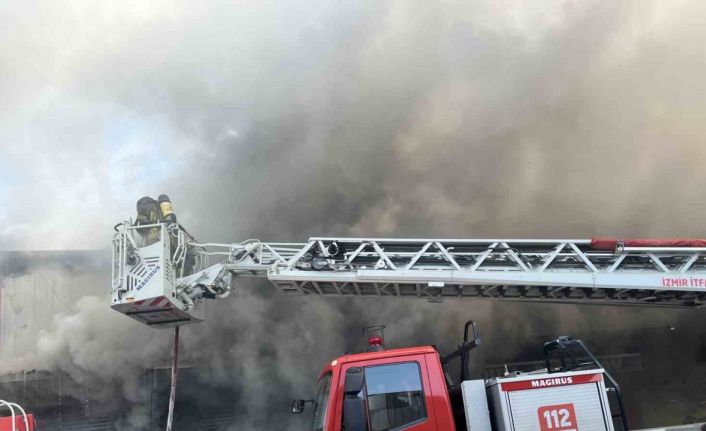 İzmir Buca 6. Sanayi Sitesi’ndeki bir yedek parça dükkanında çıkan yangına itfaiye ekiplerinin alevlere müdahalesi sürüyor.