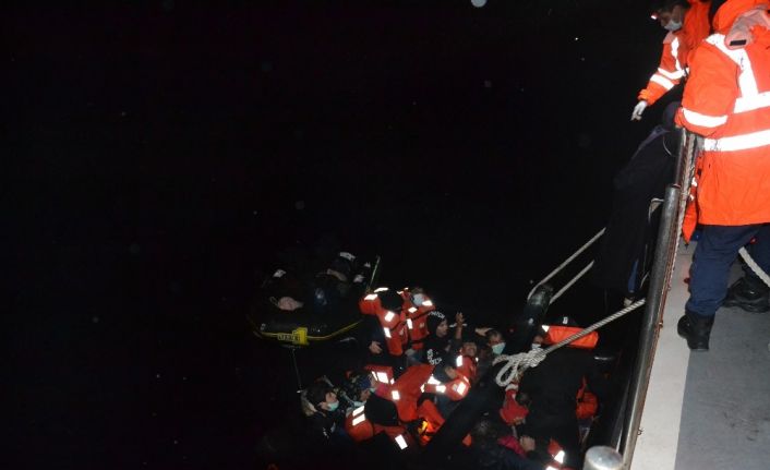 İzmir’in Çeşme ilçesi açıklarında Yunan unsurları tarafından geri itilen lastik botta bulunan 12’si çocuk 21 düzensiz göçmen Sahil Güvenlik ekipleri tarafından kurtarıldı.