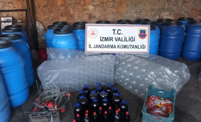 İzmir’in Menderes ilçesinde bir eve operasyon düzenleyen jandarma ekipleri, 11 bin 200 litre sahte içki ele geçirdi.