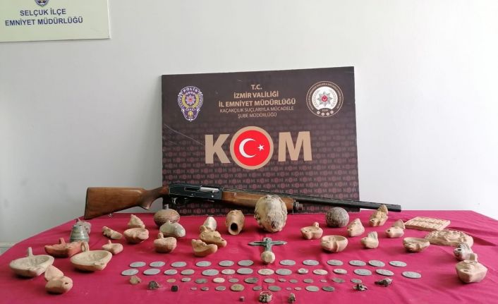 İzmir’in Selçuk ilçesinde polisin tarihi eser kaçakçılarına yönelik düzenlediği operasyonda, değişik dönemlere ait 91 adet tarihi eser ele geçirildi.