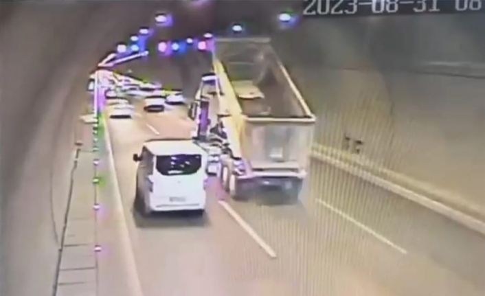 Yaşanan kaza bir otomobilin içerisinde bulunan araç içi kamerasına ve tünel içerisindeki güvenlik kamerasına anbean yansıdı. Görüntülerde, damperi açık unutulan kamyonun seyir halindeyken ışıklı hız levhalarının bağlı olduğu demir profile çarptığı, demir profilin yola düştüğü ve o esnada tüneli kullanan araç sürücülerinin de fren yaparak kazadan kurtulma çabaları yer aldı.