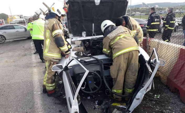 İzmir’in Aliağa ilçesinde bir araçla çarpışan otomobilin ikiye bölündüğü kazada 4 kişi yaralandı.