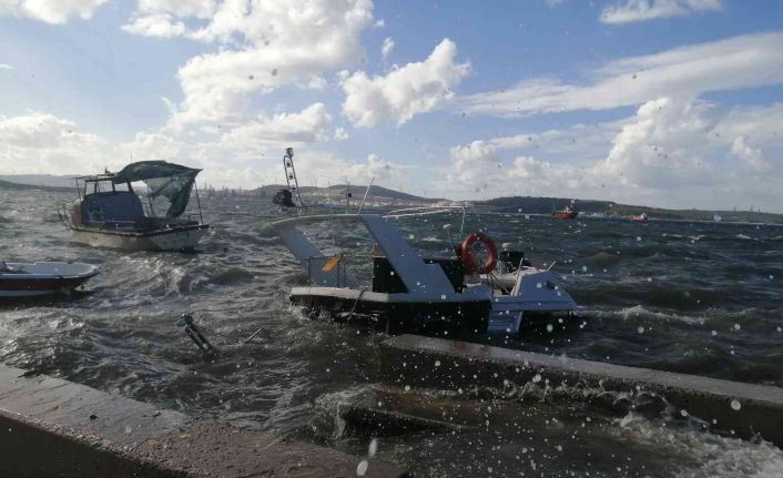 İzmir’de dün sabah saatlerinde başlayan ve bugün de etkisini gösteren fırtına, kentin kuzeyinde de hayatı olumsuz etkilemeyi sürdürüyor. Aliağa ilçesi Su İskelesi mevkiinde şiddetli lodos nedeniyle kabaran deniz suları kıyı bandına taşarken, tekne sahipleri de zor anlar yaşadı. Kuvvetli lodos nedeniyle iskelede bulunan 4 tekne zarar görürken 3 tekne de alabora olarak battı.
