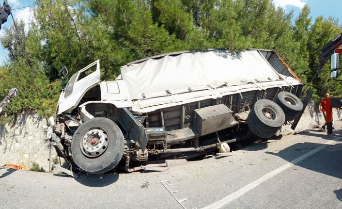 İzmir’in Bornova ilçesinde freni boşalan kamyon, yol kenarındaki bankete devrilerek 200 metre sürüklendi. Sürücü kazayı hafif sıyrıklarla atlattı.