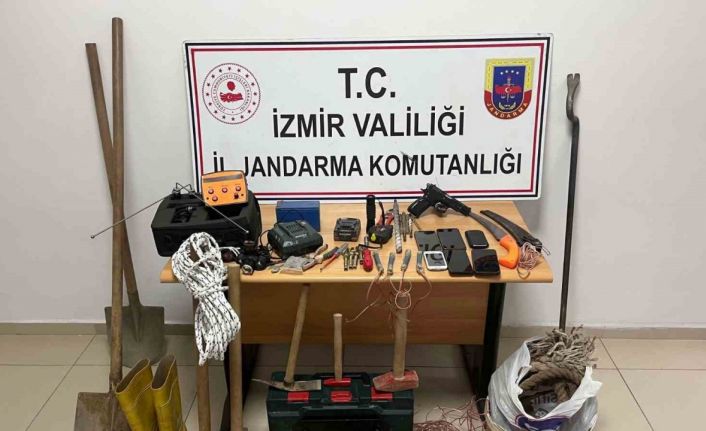 İzmir’in Tire ilçesinde, kaçak kazı yapan 7 kişi jandarma tarafından suçüstü yakalandı.