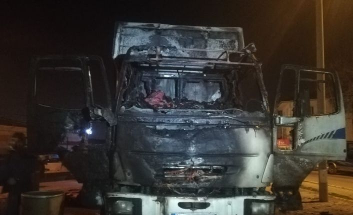 Yangın sonrası kamyon kullanılamaz hale gelirken, hafif ticari araçta da hasar meydana geldi. Olayla ilgili polis ekiplerince soruşturma başlatıldı.