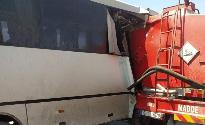 İzmir’in Kınık ilçesinde maden işçilerini taşıyan servisle akaryakıt tankerinin çarpışması sonucu servis minibüsünde bulunan 16 kişi yaralandı. Hayati tehlikeleri bulunmayan yaralılar Soma, Bergama ve Kınık’ta bulunan hastanelerde tedavi altına alındı.