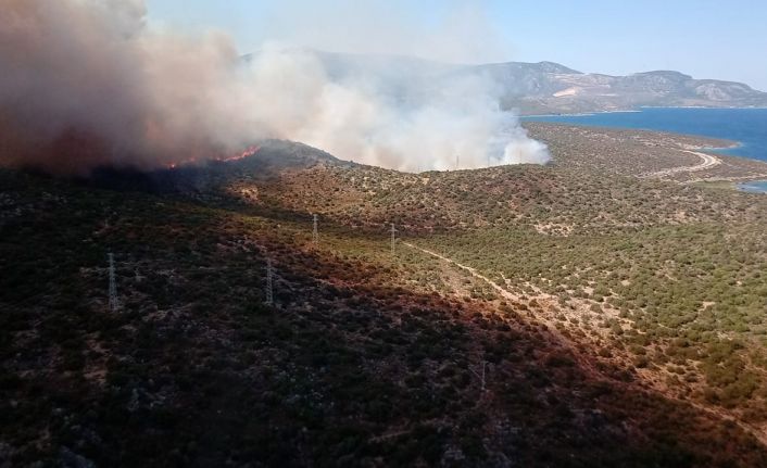 İzmir’in Urla ilçesine bağlı Balıklıova Mahallesi yakınlarında başlayan makilik orman yangınına 2 uçak ve 1 helikopterle müdahale ediliyor.