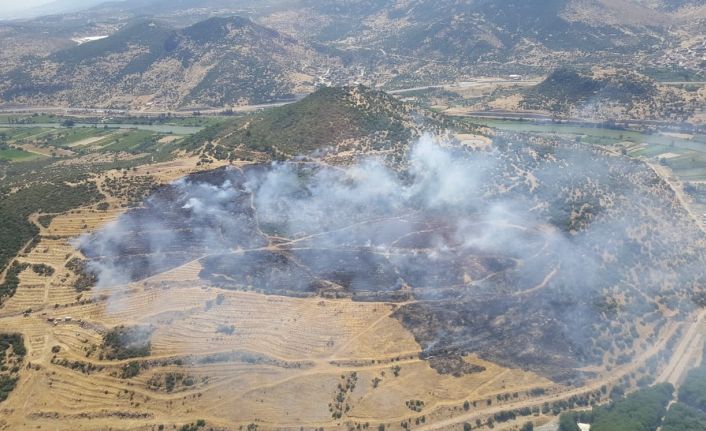 İzmir’in Menemen ilçesinde makilik ve zeytinlik alanda çıkan yangın kontrol altına alındı.