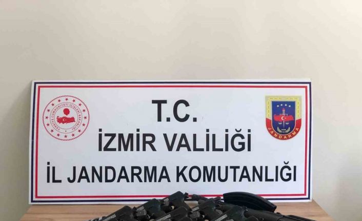 İzmir İl Jandarma Komutanlığı ekipleri, Buca’da silah ticaretini önlemeye yönelik yapılan çalışmalarda 3 şahsın kiralamış oldukları bir villada silah ve mühimmat kaçakçılığı yaptığı bilgisine ulaştı. Bunun üzerine harekete geçen ekipler, 3 şahsın kiraladığı villaya operasyon düzenledi. Yapılan operasyonda, çok sayıda ruhsatsız tüfek, tabanca, şarjör, fişek ve kılıç ele geçirildi.