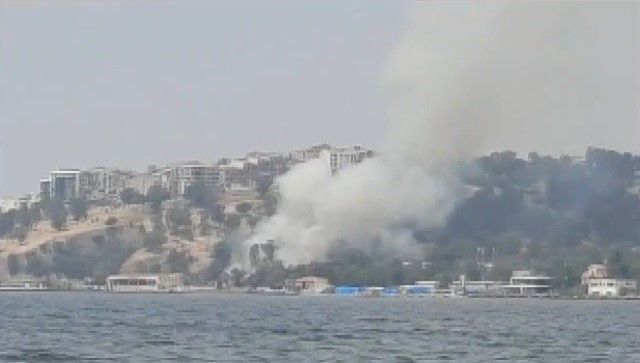 İzmir’in Bayraklı ilçesinde otluk alanda çıkan yangında kısa süreli panik yaşandı.