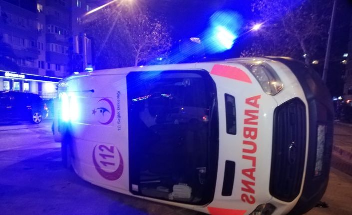 İzmir’de otomobil ile çarpışan ambulans yan yattı: 3 yaralı