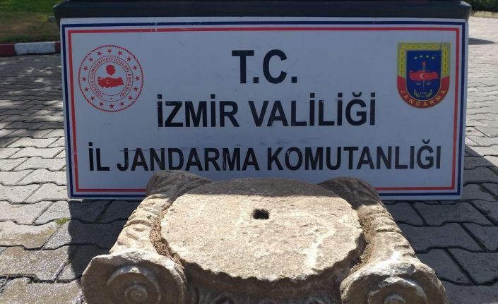 İzmir İl Jandarma Komutanlığına bağlı ekipler, alınan istihbarat sonucu durdurulan bir araç içerisinde satışı yapılmak istenen Roma dönemine ait bir adet sütun başlığı ele geçirildi.