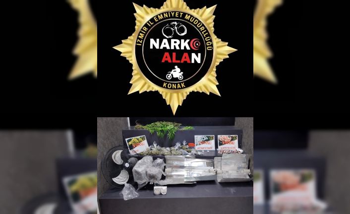 Konak İlçe Emniyet Müdürlüğü ve Narkotik Suçlarla Mücadele Şube Müdürlüğü personelinden oluşan Narko Alan ekipleri, uyuşturucu madde ticareti ve imalatını önlemeye yönelik çalışmalarını sürdürüyor. Bu kapsamda ekipler, ilçede bulunan bir adreste uyuşturucu madde yapımında kullanılan bitkiler yetiştirildiğini tespit etti. Polis ekiplerince sera sisteminin kurulduğu evde yapılan aramada 416,06 gram esrar, 40 kök Hint keneviri, 7 gram kenevir tohumu, 5,54 gram metamfetamin, 54,56 gram kokain ile 105 adet sentetik ecza ele geçirildi. Ayrıca kenevir yetiştirmekte kullanılan çeşitli aletlere de el konuldu. Operasyonda evde bulunan 1 şüpheli polis ekiplerince gözaltına alındı. Emniyetteki işlemlerinin ardından adliyeye sevk edilen şüpheli, çıkarıldığı mahkemece tutuklanarak cezaevine gönderildi.