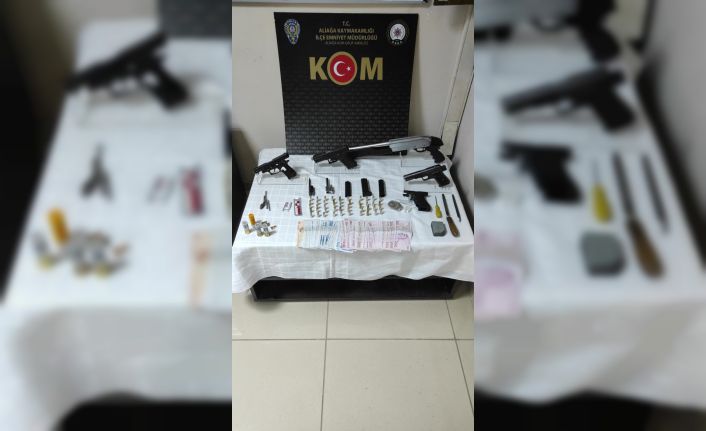 Aliağa Organize Suçlarla Mücadele Büro Amirliği ekipleri, Organize Suçlarla Mücadele Şube Müdürlüğü koordinesinde, Kınık ilçesinde bir kişinin silah imalatı ve ticareti yaptığı bilgisi üzerine harekete geçti. Belirlenen adrese operasyon gerçekleştiren polis ekipleri evini silah atölyesine çeviren şüpheli A.M.’yi yakaladı. Adreste yapılan operasyonda ise 3 adet tabanca, 1 adet pompalı tüfek, 1 adet tabanca namlusu ile sürgüsü, 8 adet uyuşturucu hap, 4 gram uyuşturucu madde ve çok sayıda tabanca mermisi ile tabanca yapımında kullanılan malzeme ele geçirildi.