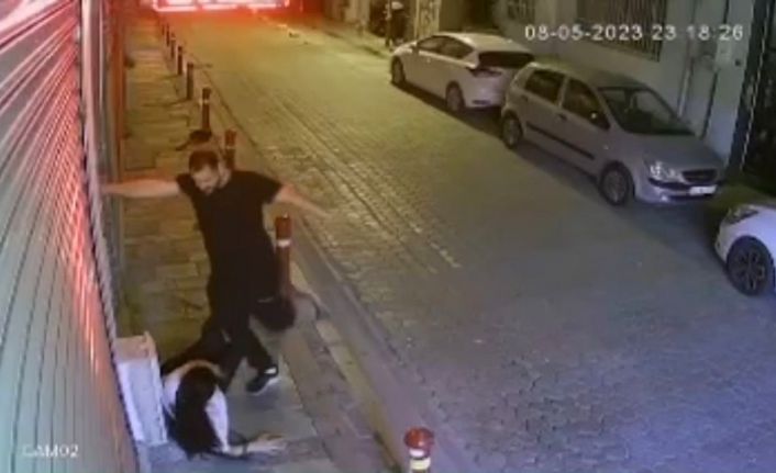 Öte yandan meydana gelen şiddet anıyı ise çevredeki bir iş yerinin kamerası tarafından görüntülendi. Görüntüde, A.E.’nin A.Ş. adlı kadına saldırdığı, yumruk ve tekme darbeleriyle darbettiği daha sonra da gürültüyü duyarak koşanların geldiğini görünce kaçtığı anlar yer aldı. Görüntüde saldırganın yerdeyken kadının suratına tekme attığı anlar da dikkat çekti.