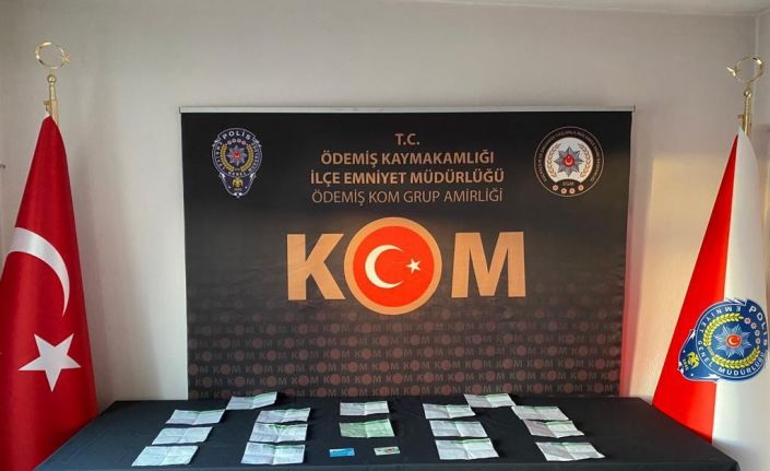 Ödemiş İlçe Emniyet Müdürlüğü Kaçakçılık ve Organize Suçlarla Mücadele (KOM) Grup Amirliği ekipleri, ilçede A.B. isimli bir kişinin tefecilik yaptığı bilgisi üzerine harekete geçti. Şüphelinin peşine düşen ekiplerin önceden belirlediği adrese düzenlediği operasyonda, 2 kredi kartı ve 16 dekont ele geçirildi.