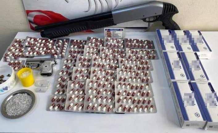 Bayraklı İlçe Emniyet Müdürlüğü ekipleri, ilçede uyuşturucu ile mücadele çalışmalarına hız kesmeden devam ediyor. Bu çerçevede ekipler, bir evde uyuşturucu satışı yapıldığı ihbarı üzerine harekete geçti. Yapılan çalışmalarda O.Y. ve Ü.Y.’nin uyuşturucu ticareti yaptığı tespit edildi. Bunun üzerine adrese operasyon düzenleyen ekipler, 416 sentetik ecza maddesi, pompalı tüfek, 2 gram esrar, 95 gram metamfetamin ve 2 fişek ile tabanca ele geçirdi.