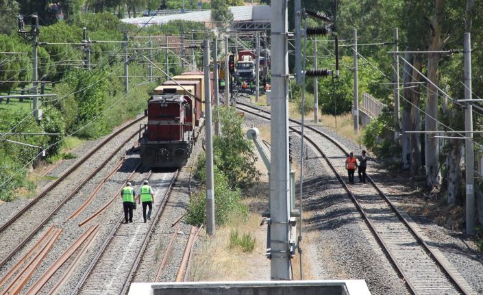 İzmir’in Bayraklı ilçesinde Turan İstasyonu yakınında bir yük treninin 4 vagonu raydan çıktı. Yaşanılan olay nedeniyle İZBAN’da Halkapınar-Çiğli durakları arasında seferler durdurulurken, yük treni 6 saatlik çalışma sonucunda kurtarıldı.