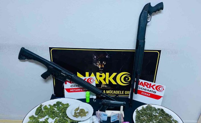 Ödemiş Narkotik Grup Amirliği ile Kaçakçılık ve Organize Suçlarla Mücadele (KOM) Grup Amirliği ekipleri, ilçede bulunan bir evde uyuşturucu ticareti yapıldığı bilgisi üzerine çalışma başlattı. Adresi belirleyen ekipler, Ödemiş Cumhuriyet Başsavcılığı koordinesinde eve baskın düzenledi. Adreste yapılan aramada yaklaşık 300 gram esrar ve 17 gram metamfetamin maddesi ile 2 otomatik tüfek, 2 ruhsatsız tabanca, 13 fişek ve 11 bin lira para ele geçirildi.