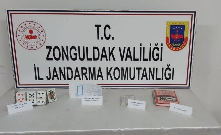 Zonguldak İl Jandarma Komutanlığı ve Kom Şube Müdürlüğü ekipleri Saltukova Beldesi Merkez Mahallesinde D.K.(33) E.K.(43) isimli şahısların ikamet ettiği evde kumar oynatıldığı bilgisi alması üzerine harekete geçti. Eve baskın yapan ekipler evde yapılan aramada, ev sahipleri haricinde, E.E (34), O.A (28) ve C.C (40) isimli şahısların olduğu tespit edildi. Evde yapılan aramada kumar oynamada kullanıldığı değerlendirilen 1 adet masa, 13 deste iskambil kâğıdı, 4 adet üzerinde isim ve rakamlar bulunan kağıt sayfası, 1 adet adisyon kağıdı, M.K. isimli şahıs adına düzenlenmiş üzerinde isim T.C.nosu ve imza bulunan açık senet ele geçirildi. Ev sahipleri D.K. ve E.K. isimli şahıslar ile apartmanın girişini görecek şekilde sokakta bekleyen ve gözcülük yaptığı öğrenilen O.T. (24) isimli şahıslar hakkında kumar oynamaya yer temin etmek ve yardımcı olmak suçundan işlem yapıldı. E.E., O.A. ve C.C. isimli şahıslara 3 bin 150 TL idari para cezası uygulanırken şahıslar ifadelerinin alınmasının ardından serbest bırakıldı.
