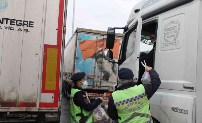KOCAELİ (İHA) – İstanbul’a geçişi yasak olan ağır vasıta araçlar, Kuzey Marmara Otoyolu’nun Kocaeli kısmında bekletiliyor. Gişelerde denetimini aralıksız sürdüren Kocaeli İl Jandarma Komutanlığı ekipleri de, sürücülere çay ve kumanya ikramlarında bulunuyor.