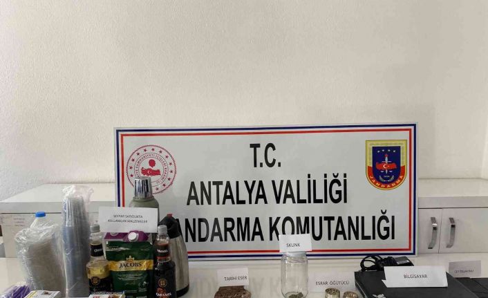 Kumluca Cumhuriyet Başsavcılığı koordinesinde; Yazır Mahallesi’nde uyuşturucu madde ile mücadelede çerçevesinde yapılan çalışmalar sonucunda, Olympos ve Çıralı sahilinde seyyar satıcılık yaptığı tespit edilen Y.G’nin evinde Adrasan Jandarma Karakol Komutanlığınca yapılan aramada, 5 gram esrar maddesi, 1 adet tarihi eser olduğu değerlendirilen materyal ele geçirildi. Ayrıca seyyar satıcılıkta kullanılan satışa hazır yiyecek malzemeleri ile bin adet seyyar satıcı kartviziti bulundu. Y.G.’ye idari para cezası uygulanıp adli işlemlere başlandı. Şüpheli ifadesinde uyuşturucu madde kullandığını, Olympos ile Çıralı sahilinde seyyar satıcılık yaptığını ve kendi adına kart bastırdığı ifade etti.
