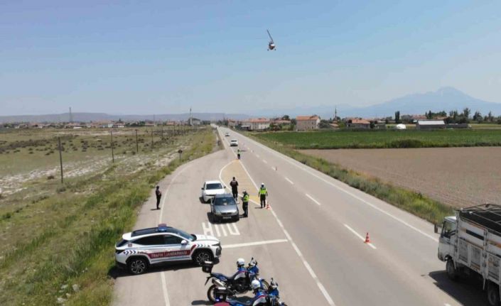 Aksaray’da jandarma ekipleri bayramda yoğunlaşan trafikte kazaların yaşanmaması için Cayrokopter ve dron ile deneti yapıyor.