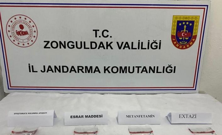 Zonguldak İl Jandarma Komutanlığı koordinesinde düzenlenen operasyonda 1 gr. Metamfetamin, 5 gr. Kubar Esrar, 1 adet Extacy ve 2 adet uyuşturucu kullanma aparatı ele geçirildi. Olayla ilgili Cumhuriyet Başsavcılığının talimatları doğrultusunda yakalanan 4 kişi ifadeleri alındıktan sonra mahkemeye sevk edildi. Çıkarıldıkları mahkeme tarafından 3 kişi serbest bırakılırken 1 kişi tutuklanarak ceza evine gönderildi.