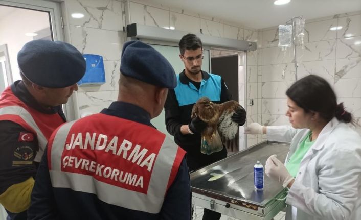 Bursa’da jandarma ekipleri devriye esnasında bulduğu yaralı şahine sahip çıktı.