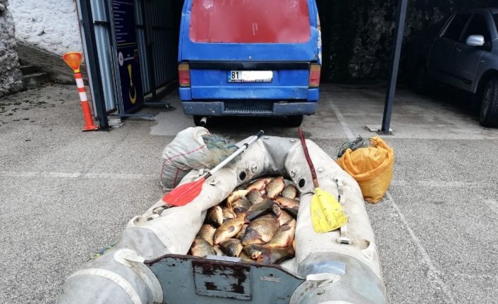 Bolu’nun Seben ilçesinde bulunan Taşlıyayla Göleti’nde usulsüz yöntemlerle dönem dışı avcılık yapıldığı ihbarı üzerine il jandarma komutanlığı ekipleri çalışma başlattı. Balık avlandığı ihbarının yapıldığı gölete operasyon düzenleyen ekipler 3 kişiyi suçüstü yakaladı. Şahısların araçlarında yapılan aramada, 1 adet şişme bot, piyasa değeri yaklaşık 4 bin lira olan 200 kilogram sazan balığı ve 2 bin metre ağ ele geçirildi.