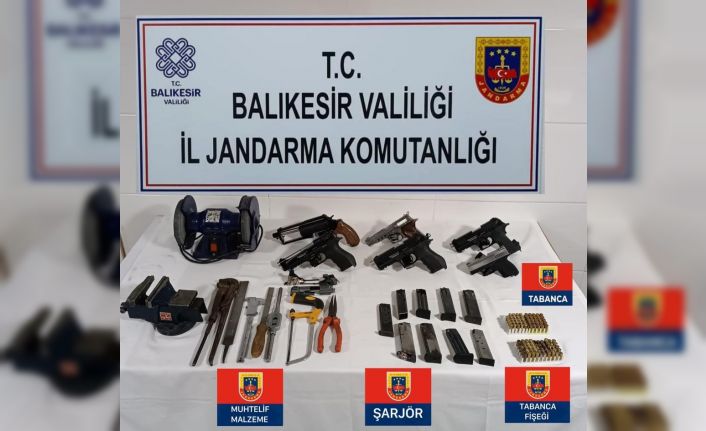 Balıkesir’in Edremit ilçesinde kaçak silah imalatı yapıldığı belirlenen adrese jandarma tarafından gerçekleştirilen baskında, çok sayıda ruhsatsız silah ele geçirildi. Operasyonda bir kişi gözaltına alındı.