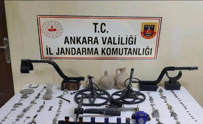 Ankara İl Jandarma Komutanlığınca Kültür ve Tabiat Varlıklarının Korunması ile Kaçakçılığın Önlenmesine ilişkin yürüttüğü başarılı çalışmada tarihi eser kaçakçılarına darbe vuruldu. S.E. isimli zanlının tarihi eserleri piyasaya sürerek haksız kazanç elde ettiği bilgisine ulaşıldı. Ankara’nın Nallıhan ilçesi Çayırhan Mahallesi’nde ikamet ettiği öğrenilen S.E. isimli şüphelinin evinde yapılan arama neticesinde 27 adet bronz sikke, 3 adet toprak çömlek, 33 adet muhtelif taş obje, 43 adet muhtelif metal obje, 2 adet CZ Marka metal arama detektörü ele geçirildi. Zanlı S.E., jandarmaya götürüldükten sonra ifadesi alınarak adli makamlara sevk edildi.